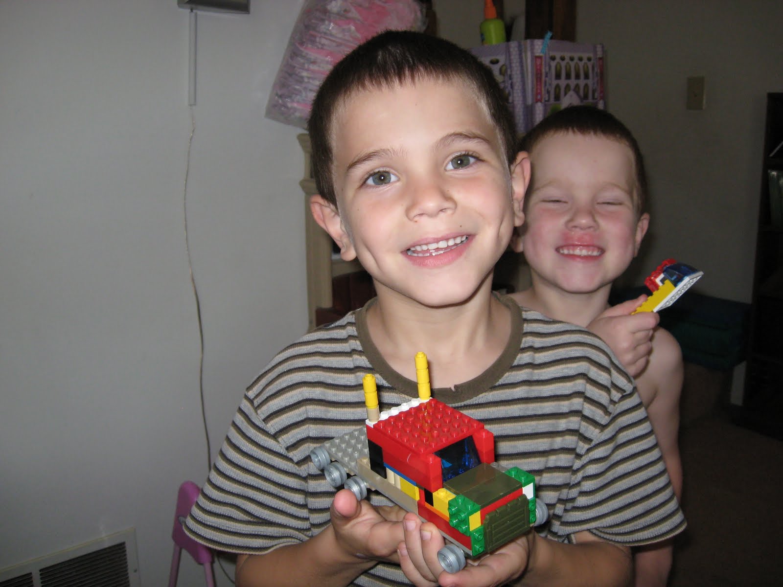We went to our first Lego club meeting today, they bring 100 legos and are able to switch bags with another member if they want. There is a theme that one of the kids chooses and this time it was robots. All of my boys made some pretty awesome robots! After everyone is finished, they hold a show and tell. It was super fun! Trace was a little shy and wouldn't talk about his. He warmed up once we had a picnic lunch outside and all kids ran crazy having a ball with each other. Mylee didn't play with her 2 year old friend at all, but ran along with all the boys...typical! I had my camera and totally forgot to take pictures!